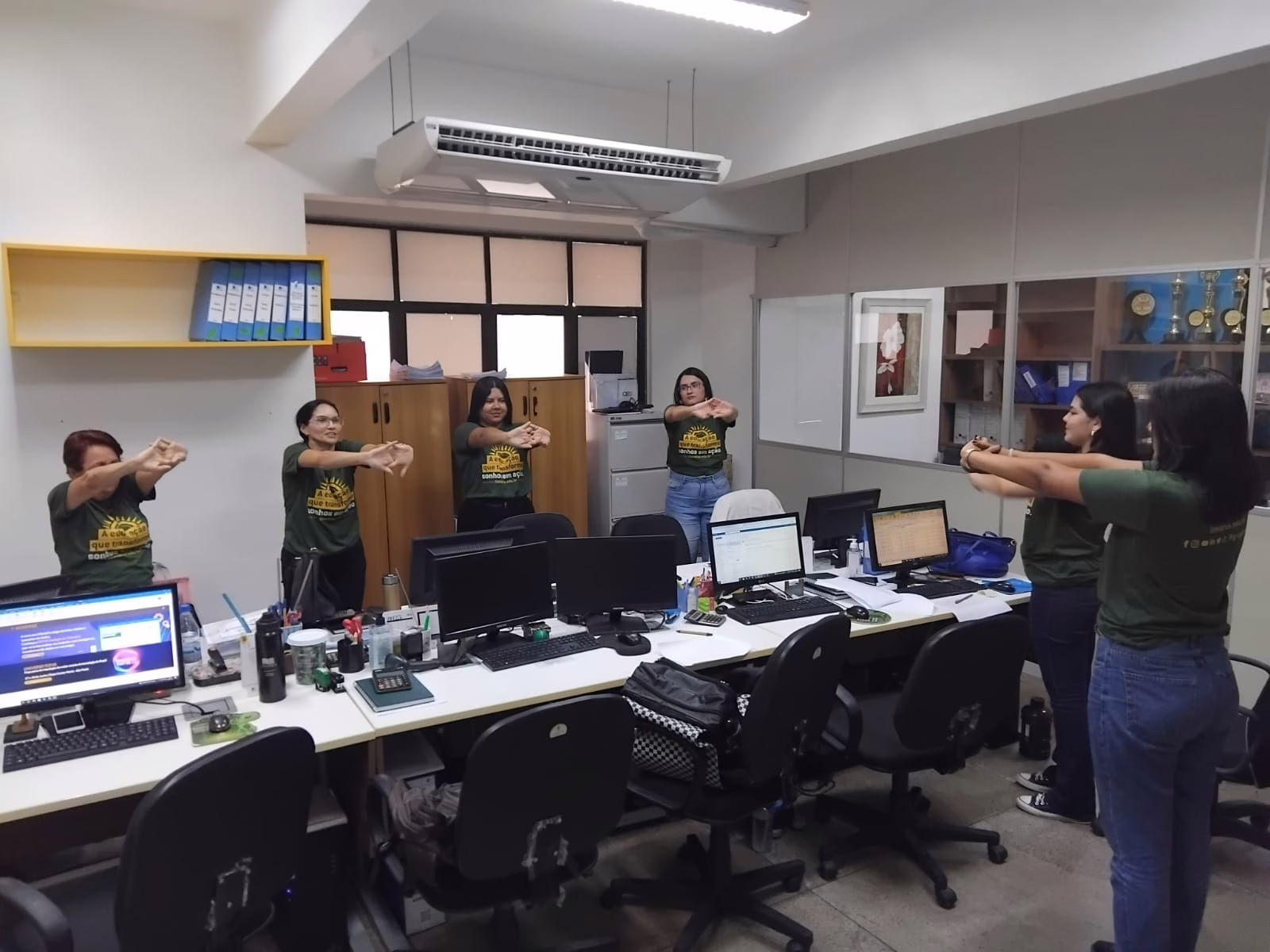 Diariamente, em cada em cada setor, um multiplicador ou especialista realiza a ginástica laboral, com o objetivo de promover benefícios que possam minimizar os impactos negativos que o trabalho pode causar na vida e na saúde dos trabalhadores.